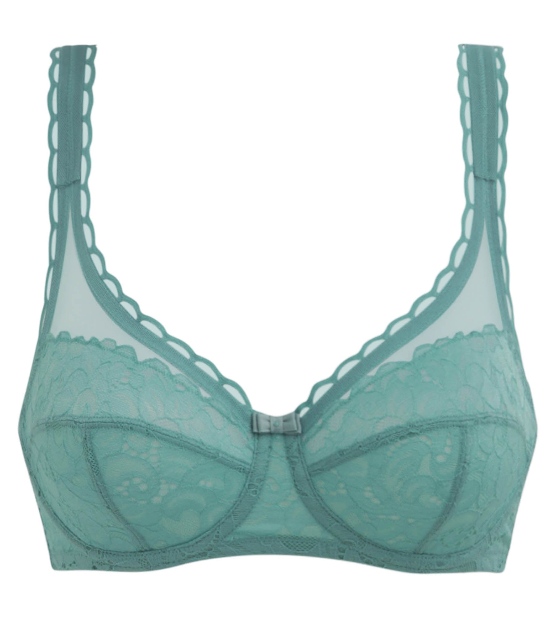 Opt for this underwired bra in poetic blue from Recycled Classic Lace Support collection. This full cup bra offers an excellent support and comfort thanks to its wide straps, U-shaped back and full coverage. You will love the fabric mix, lace and tulle panelling, satin bow and the scalloped detailing, all feminine details that women want in their lingerie. The perfect combination of support and feminity, ideal for all breasts.