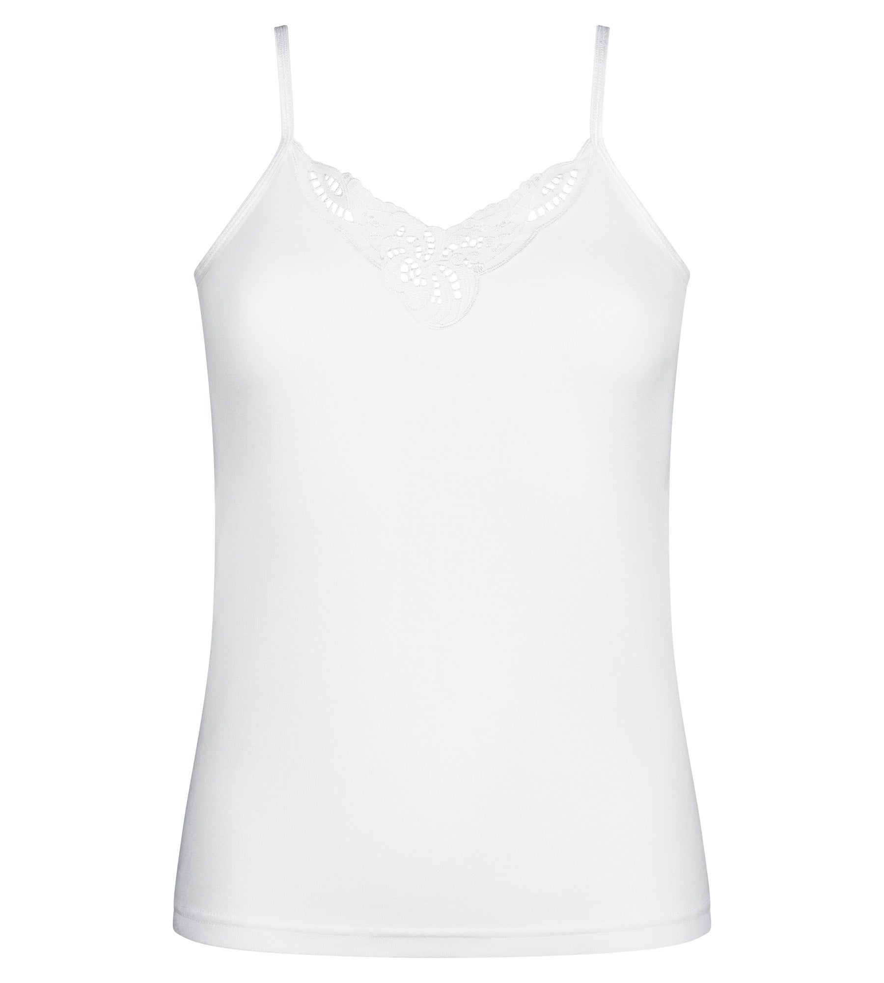 Discover the camisole in white Cotton Feminine: a stretch cotton for extra comfort, a refined embroidery at the neckline and a perfect fit for every women.This t-shirt is ideal when you need extra layer.