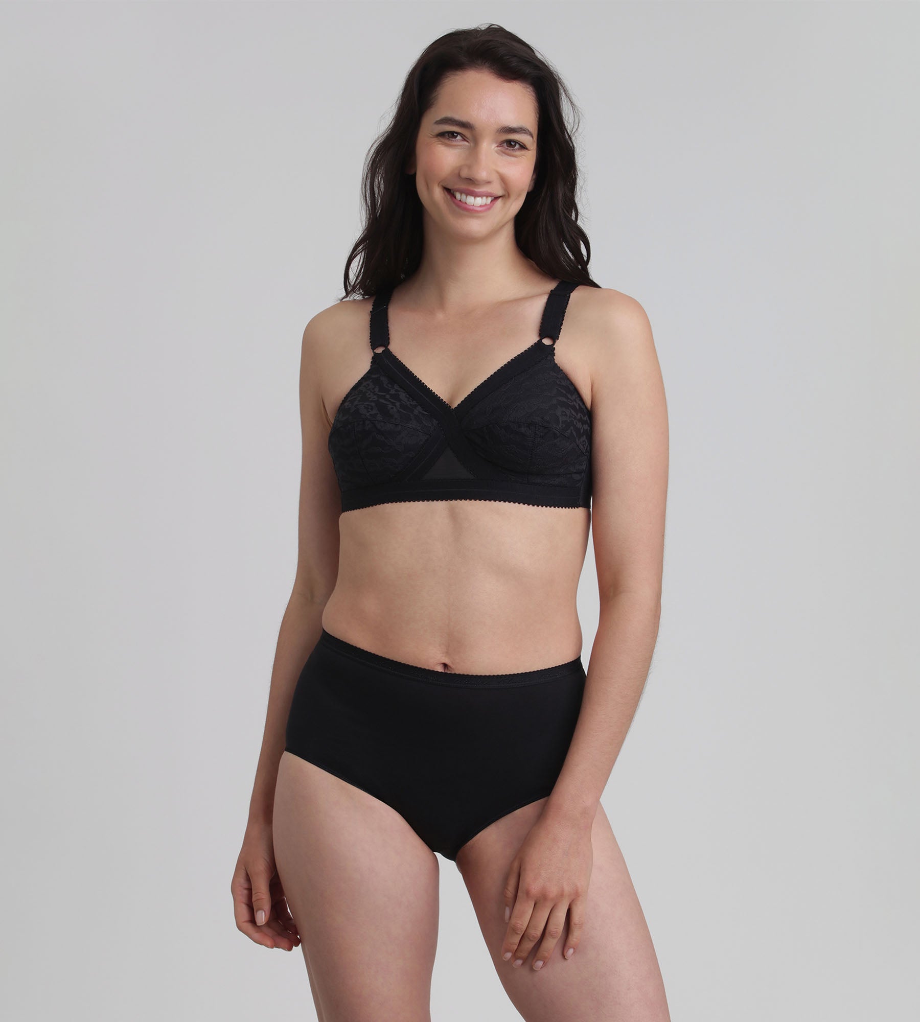 Never feel unsupported again with this underwired bra that offers great support from day to night. For the full look, match up our Cross Your Heart 556 bra in black lace with our Organic Cotton midi briefs in black.