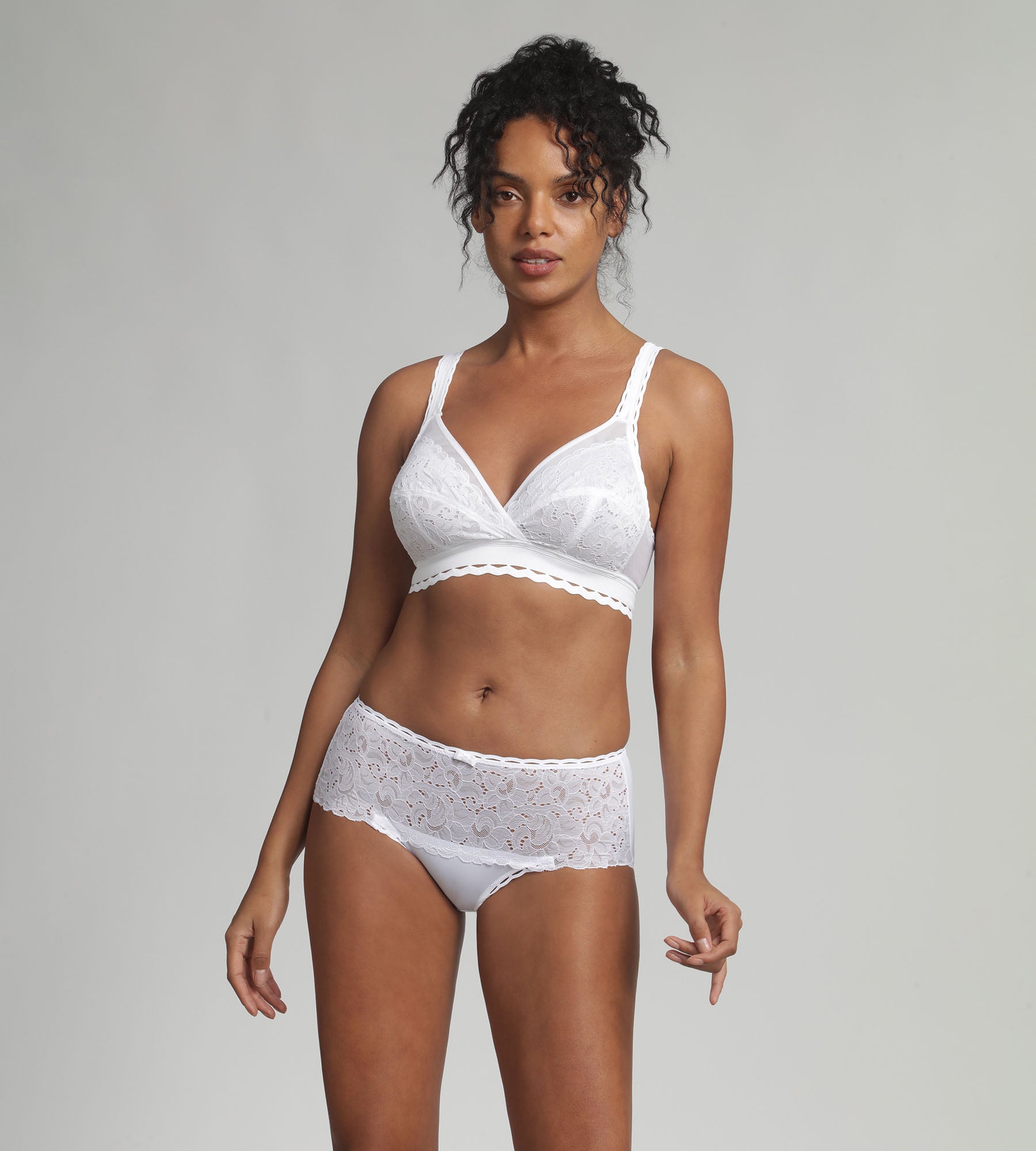 Our Classic Lace Support bras also exist in an underwired version for extra support. Both styles can be teamed with our lace midi briefs.