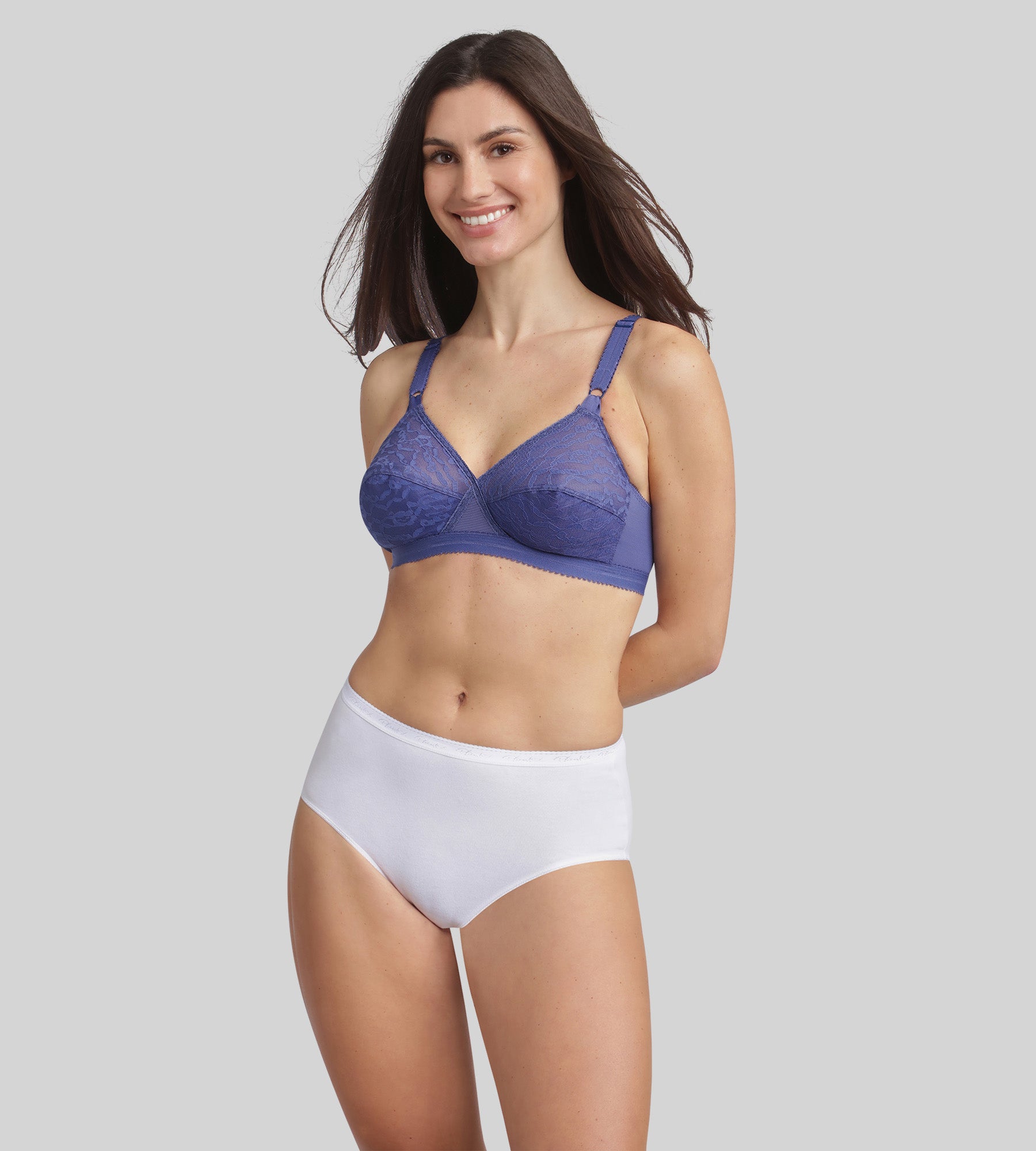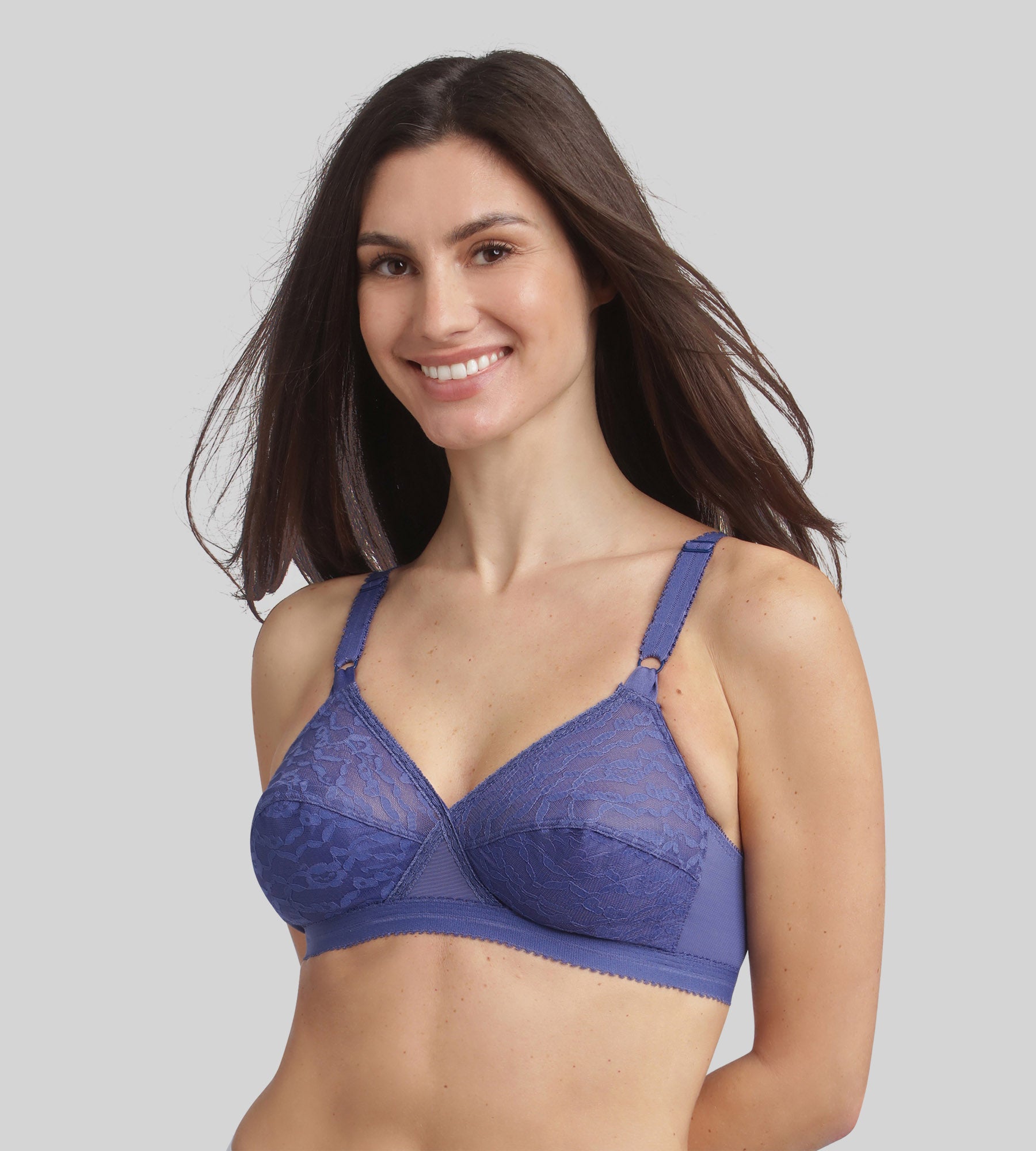 Combining support, femininity and lightness, the Cross Your Heart 165 embodies the perfect combination of Playtex® comfort and everyday elegance. Thanks to its iconic cross construction, this model delicately separates the bust with fine lace, offering perfect, natural support. The full cups, with a classic cross-cut, guarantee a flattering shape and enhance all busts. The inner and outer elastic bands are specifically designed to offer comfort and support for larger busts. The upper cup in transparent rigid mesh, accompanied by this sparkling blue colour, adds a subtle touch of femininity. The wide adjustable straps at the front allow for easy adjustment, and the wide U-shaped back, combined with two hook-and-eye fastenings, ensures a flawless fit throughout the day.