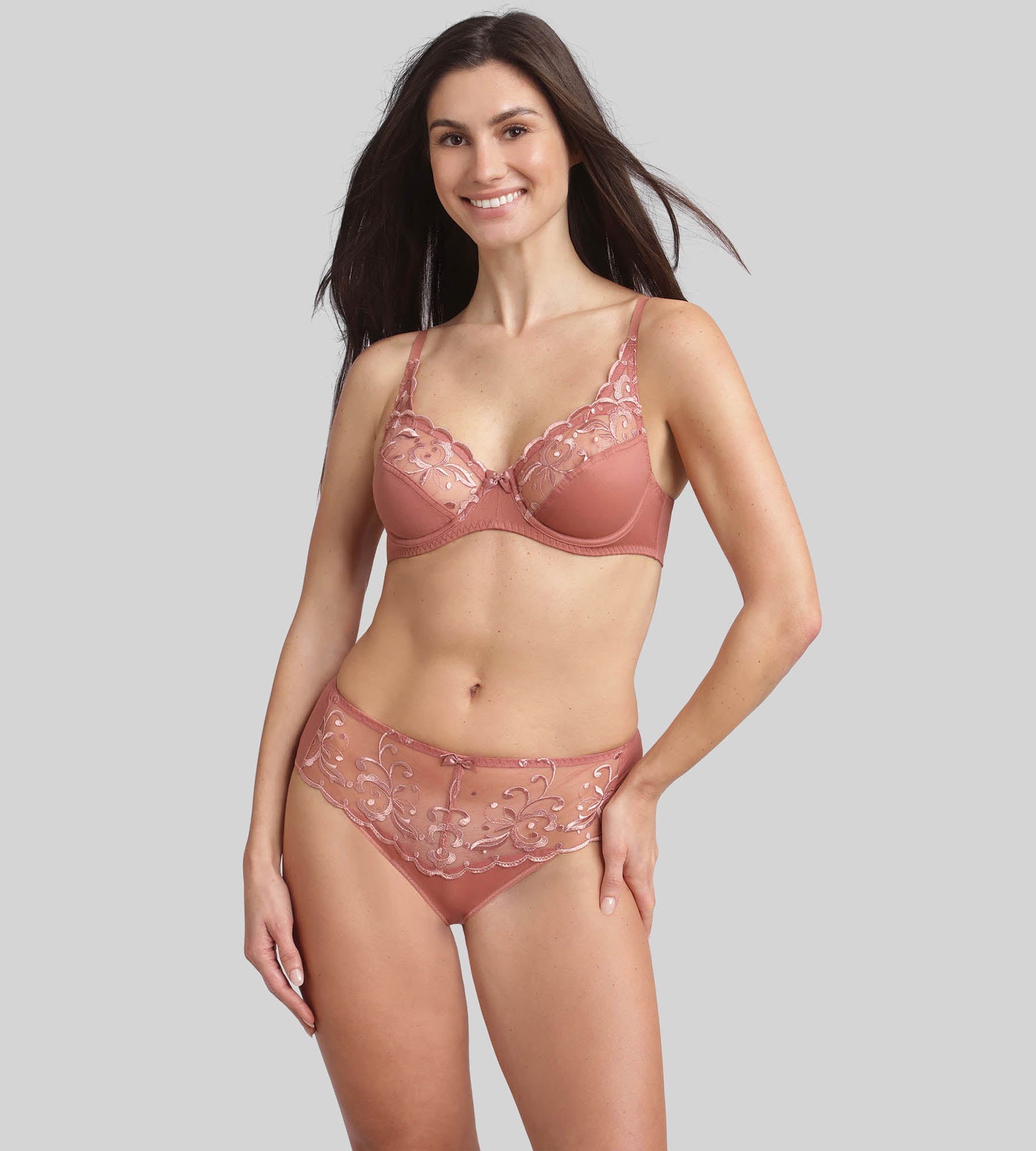 For a perfectly coordinated set, wear it with the matching cinnamon Essential Elegance Embroidery knickers and reveal your femininity with style and comfort.