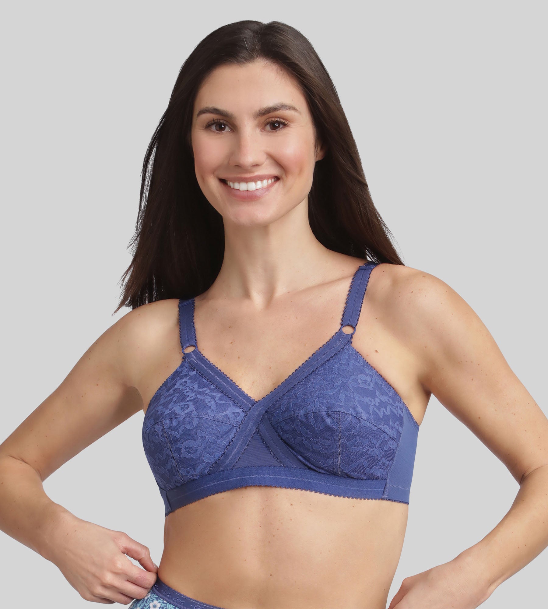 El sujetador emblemático de Playtex®, el Cruzado Mágico 556, siempre ha encarnado la combinación perfecta entre sujeción, comodidad y feminidad. Su icónico diseño en cruz en la parte delantera separa naturalmente el pecho gracias a un amplio borde elástico, lo que garantiza una sujeción perfecta, cómoda y natural para el día a día. Las copas envolventes de encaje están forradas con algodón rígido, lo que ofrece una excelente sujeción y un contorno naturalmente proyectado. La parte superior entre las copas garantiza un ajuste ideal, mientras que los tirantes anchos, ajustables en la parte delantera, permiten un ajuste fácil y una comodidad duradera. La amplia espalda en U, combinada con un doble cierre, garantiza una sujeción impecable y un soporte óptimo, incluso para los pechos más generosos. Crea tu conjunto combinando este sujetador con nuestras braguitas de Algodón Bio para una comodidad absoluta o con nuestras braguitas de encaje Cruzado Mágico Femenino Reciclado para un toque de elegancia.